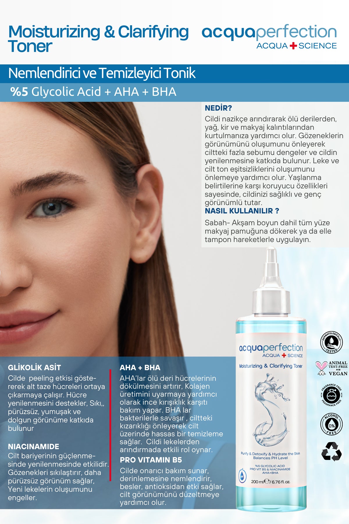 Sivilice Siyah Nokta ve Leke Karşıtı Gözenek Sıkılaştırıcı %5 Glikolik ve Salisilik Asit Tonik 200ml